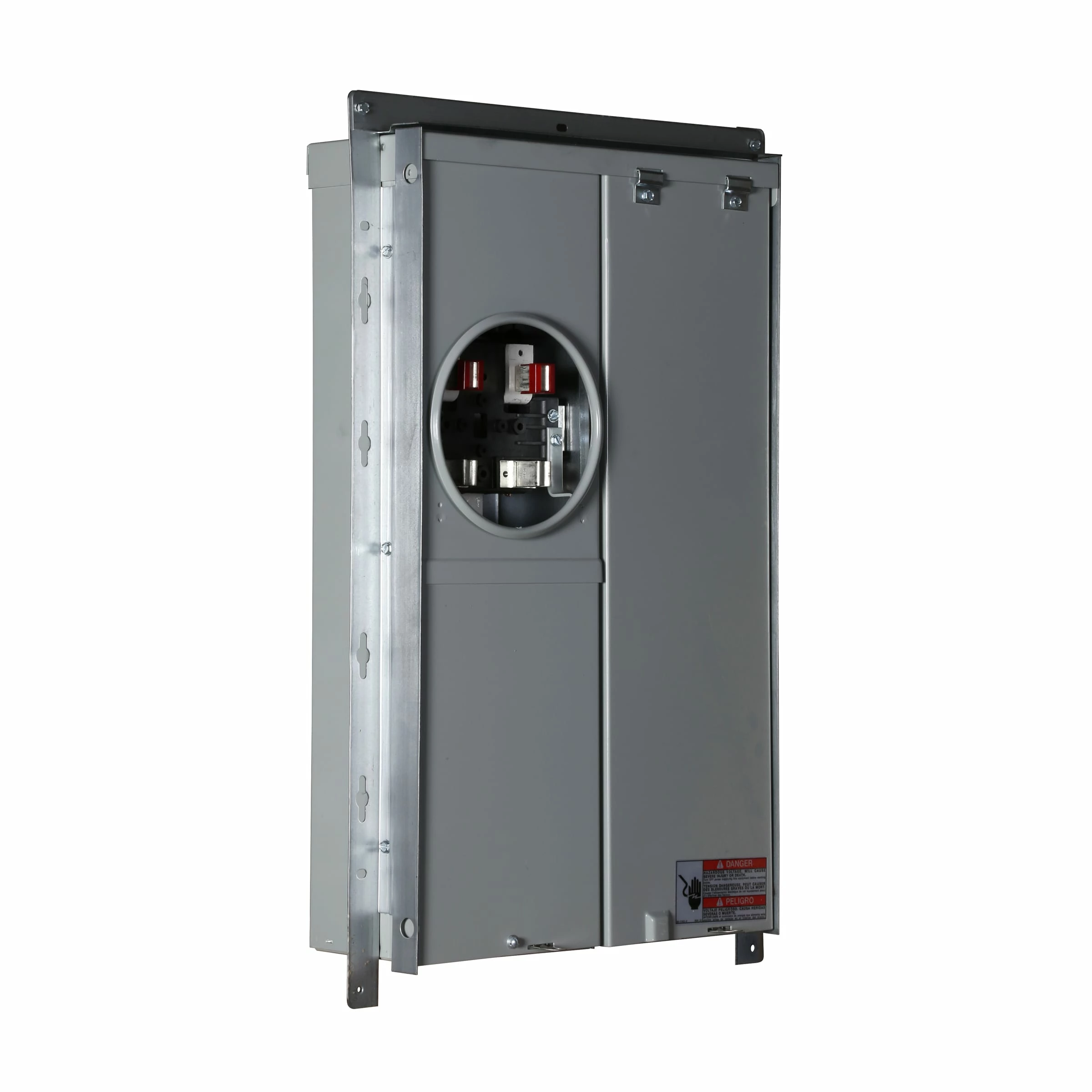 Eaton’s meter breakers combine a single meter socket and a main circuit breaker and/or loadcenter into one enclosure. Certain utilities will specify a meter breaker instead of a meter socket and loadcenter. The meter breaker is used where electricity enters a home or dwelling. The utility attaches a meter in the socket to measure power consumption. The loadcenter portion is used to distribute the power throughout the home using various circuits. Eaton offers a variety of designs to meet local utility specifications. UL listed.