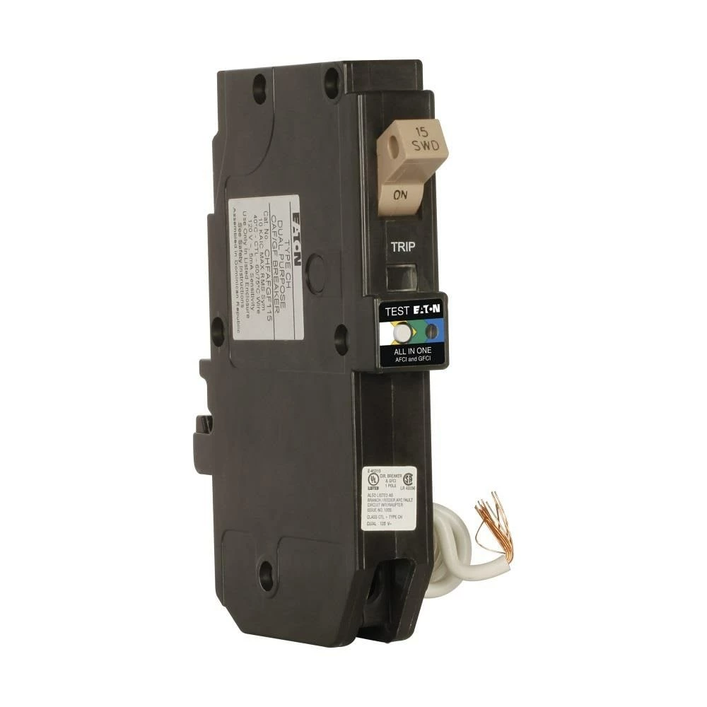 Eaton Circuit Breakers Type CH 15-Amp 1-Pole Dual Function AFCI/GFCI Circuit Breaker