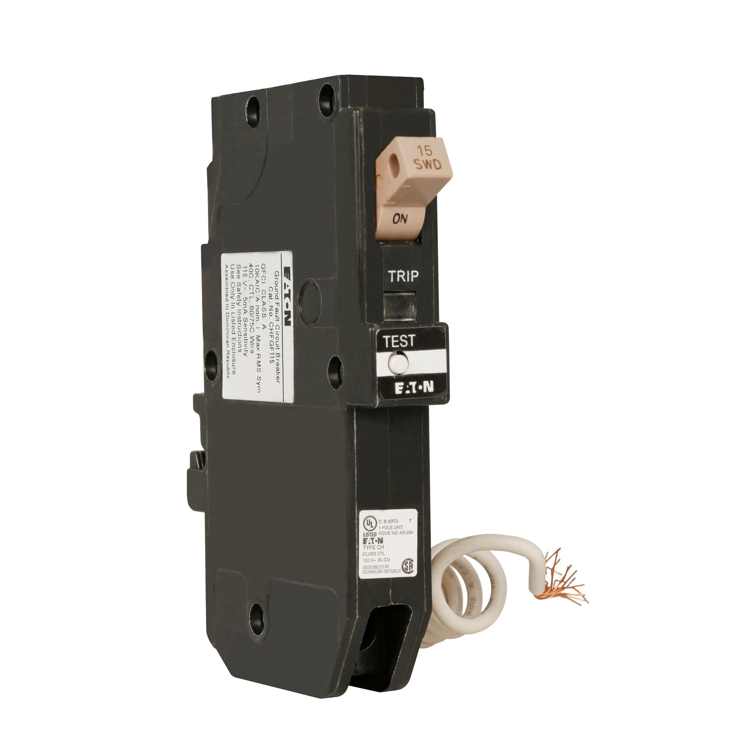 Eaton Circuit Breakers Type CH 15-Amp 1-Pole GFCI Circuit Breaker