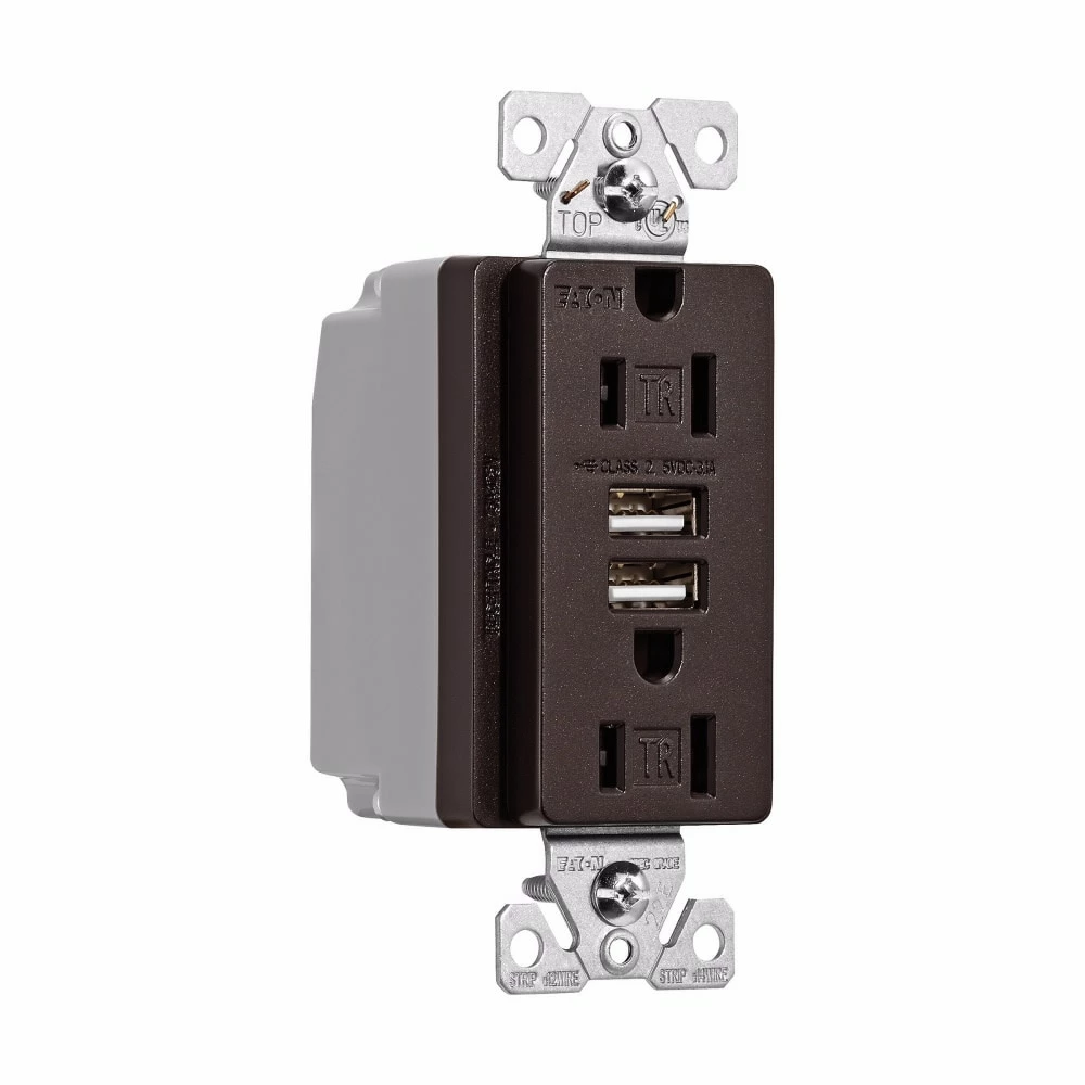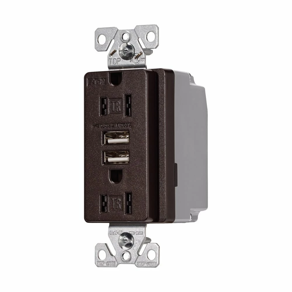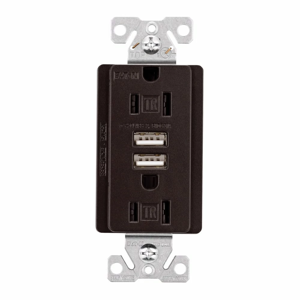 Eaton Electrical Outlets 15-Amp Tamper Resistant Residential/Commercial Decorator USB Outlet Dual Type A, Oil-Rubbed Bronze