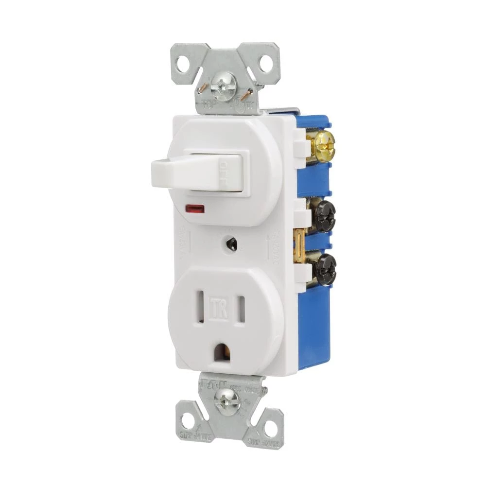 Eaton Electrical Outlets 15-Amp Tamper Resistant Residential/Commercial Duplex Switch Outlet, White