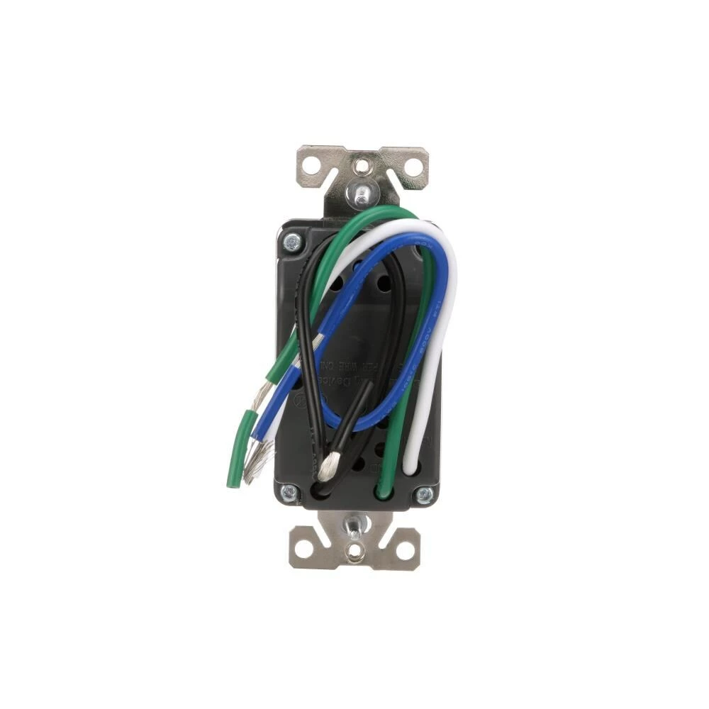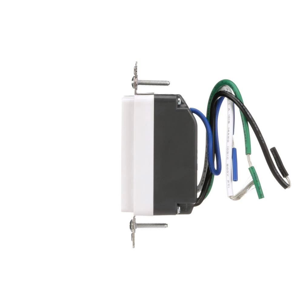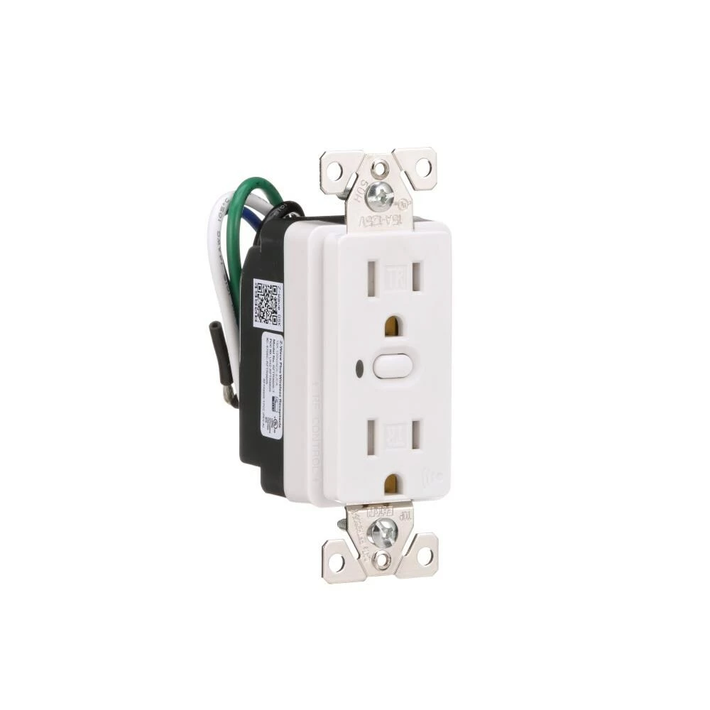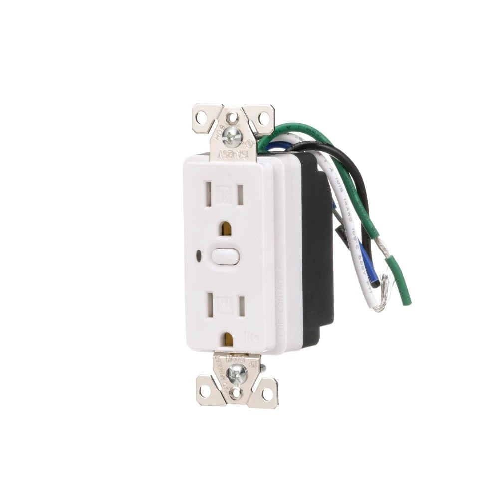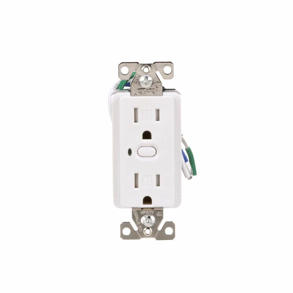 - Split control receptacle provides wireless control of one outlet, leaving the other one for normal use
