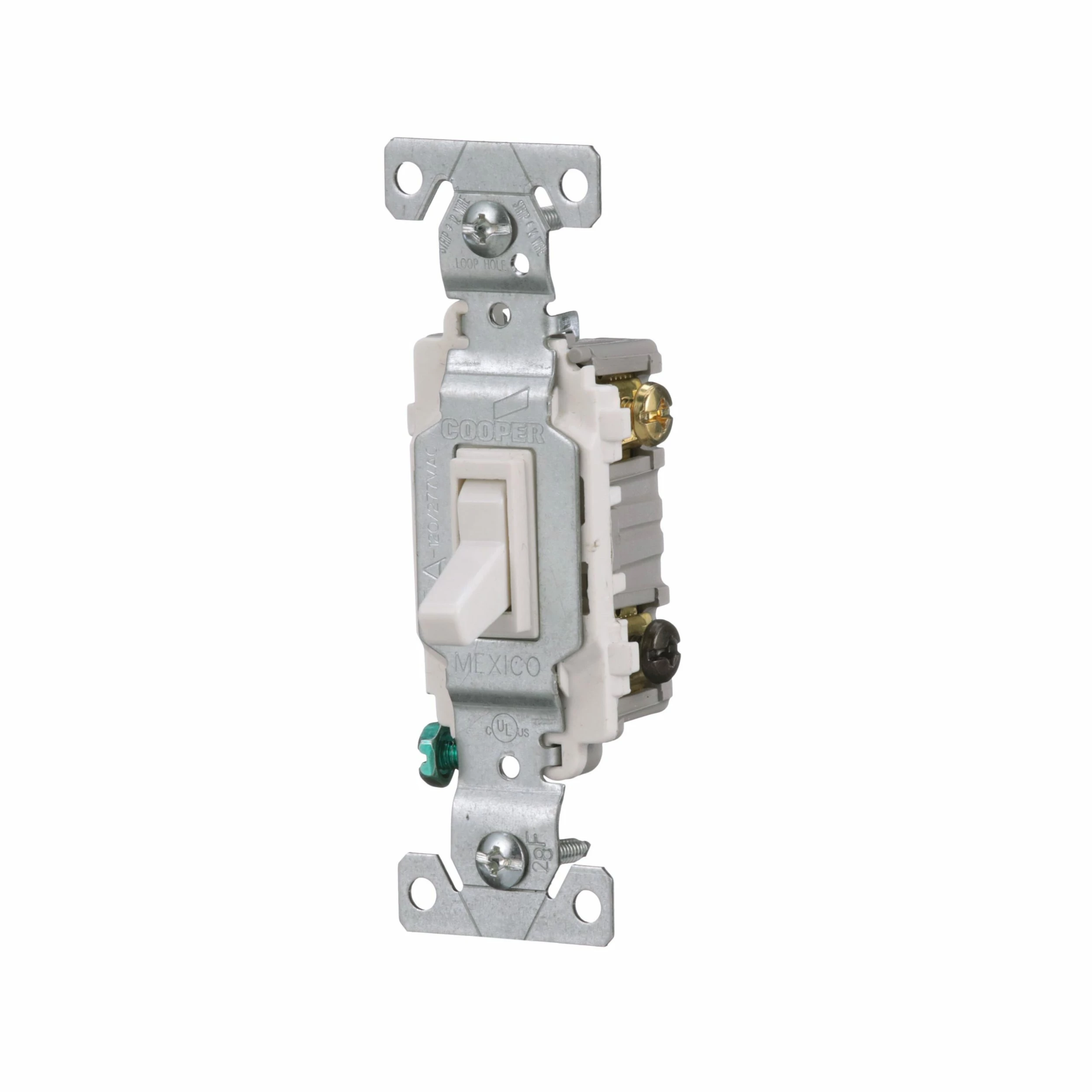 - White finish three way small toggle switch offers 15A, 120/277V capacity designed to provide superior quality, reliability, and performance in a variety of commercial and residential applications