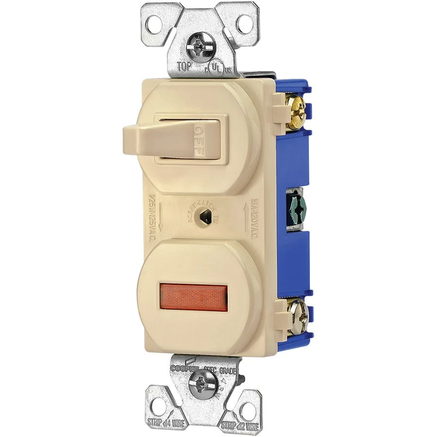 Eaton Light Switches 15-Amp Illuminated Toggle Light Switch, Ivory