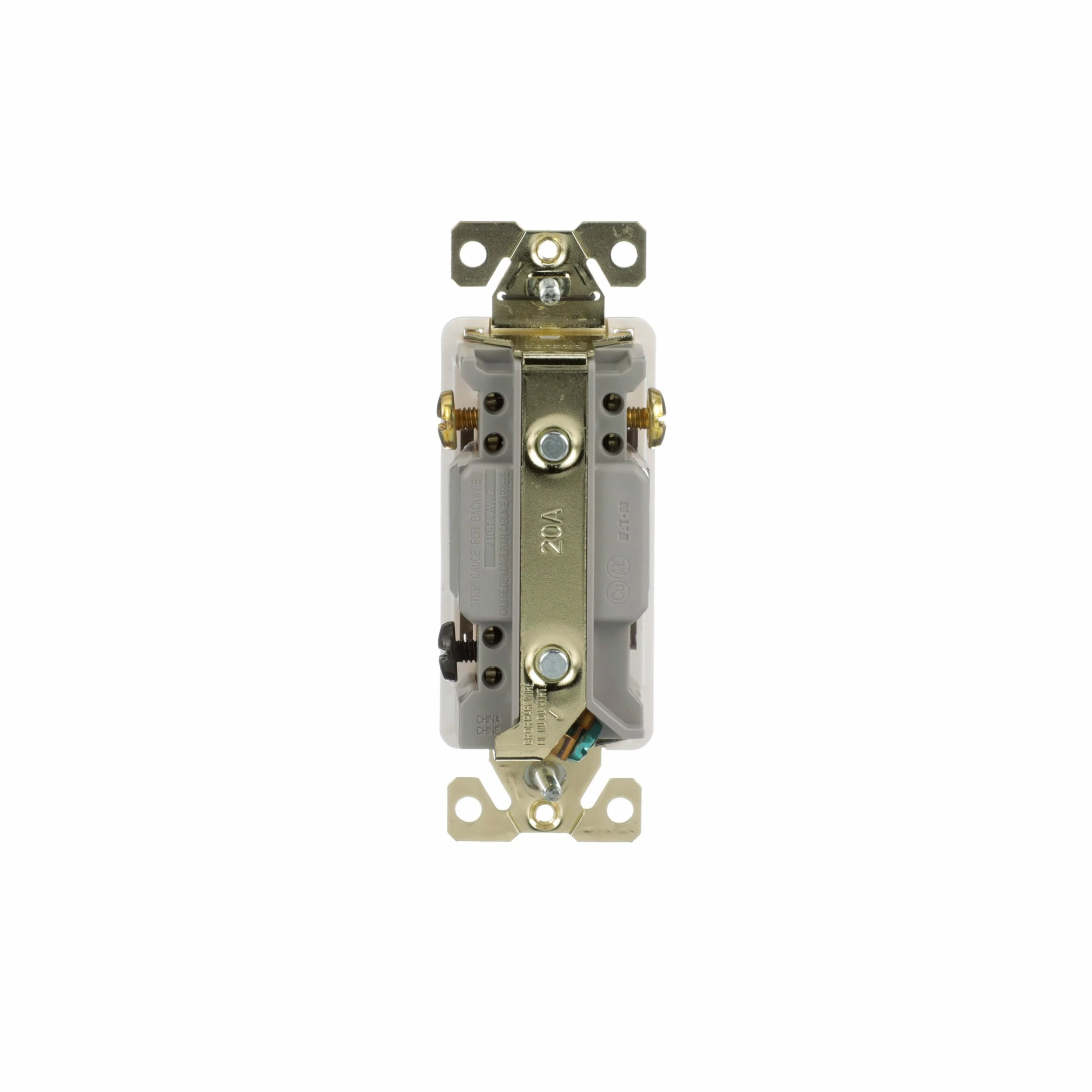 - White finish three-way decorator switch offers 20A, 120/277V capacity designed to provide superior quality, reliability, and performance in a variety of commercial and residential applications