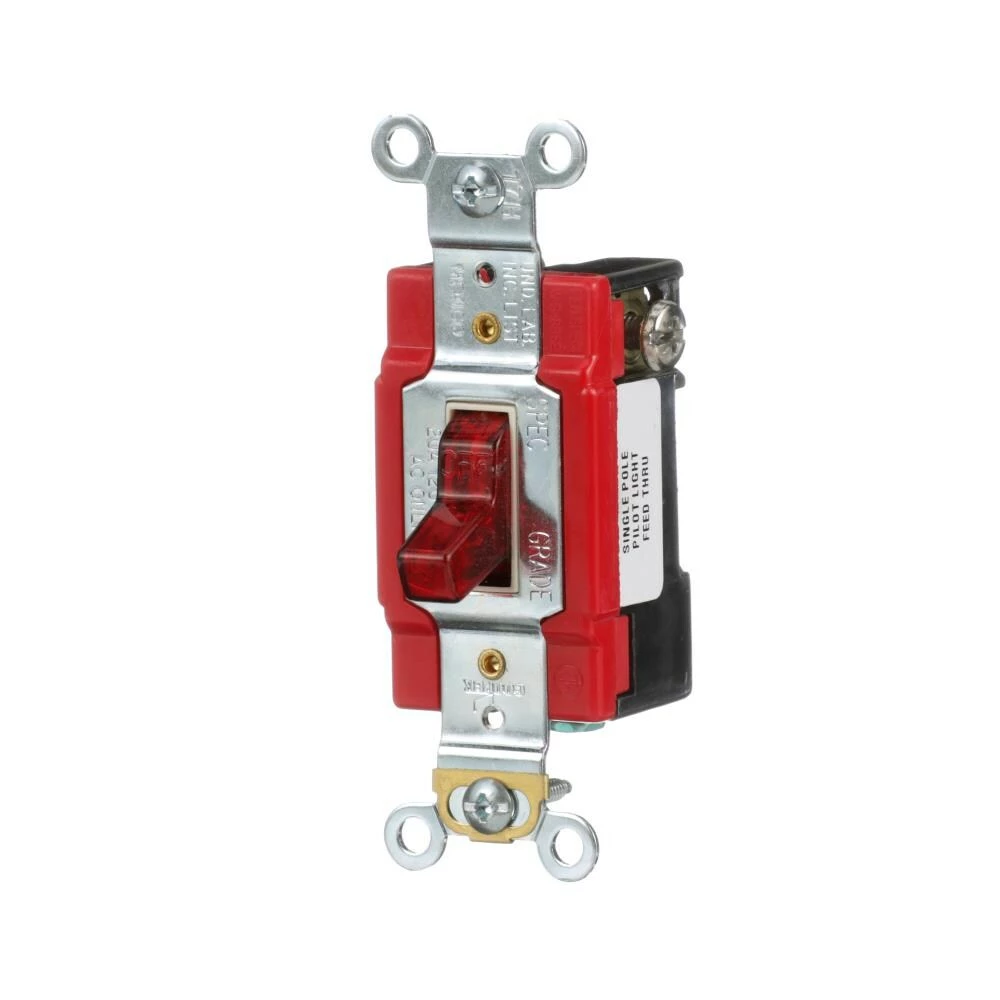 - Red finish single-pole industrial grade pilot light toggle switch offers 20A, 120/277V capacity features superior engineering, reliable, performance, and ease of installation