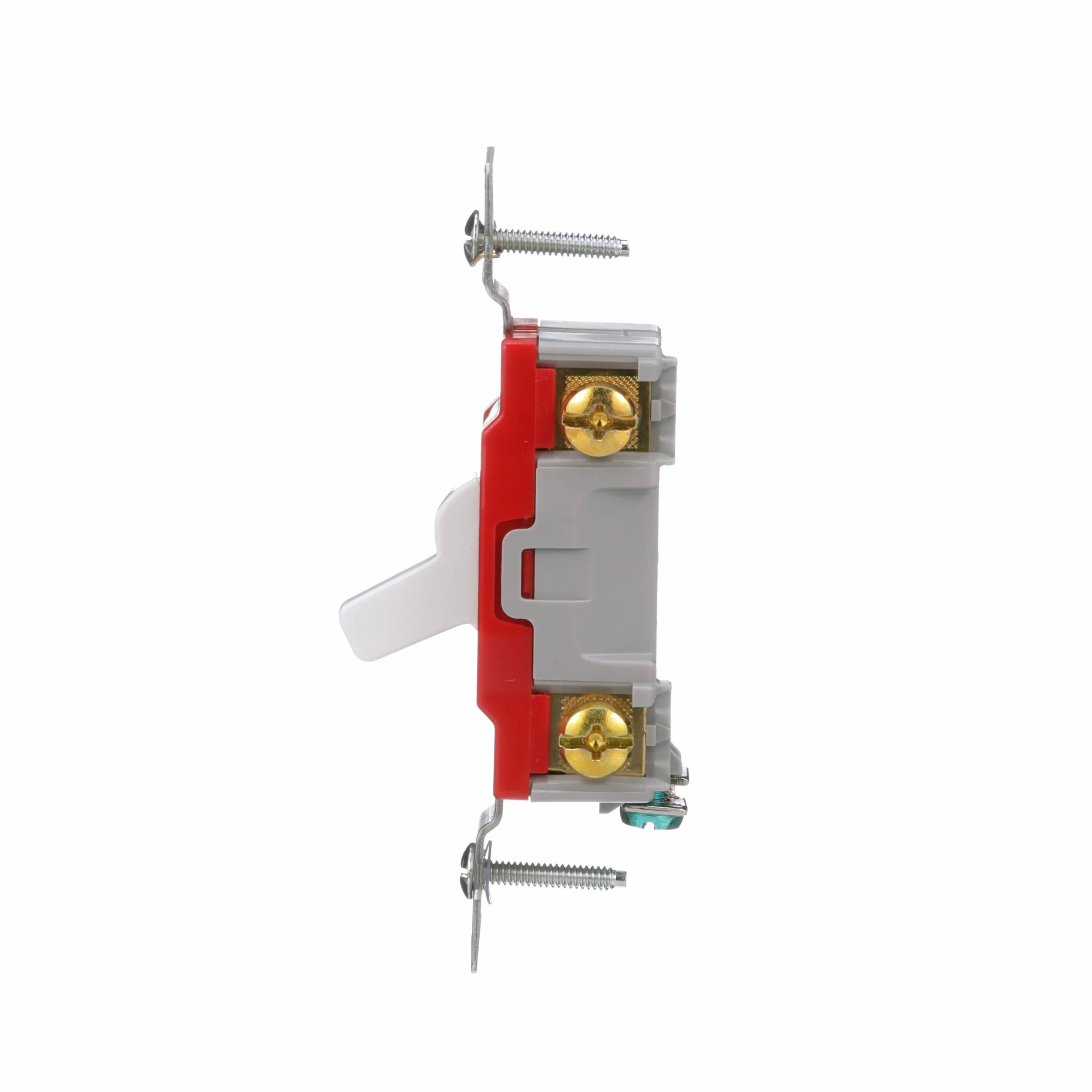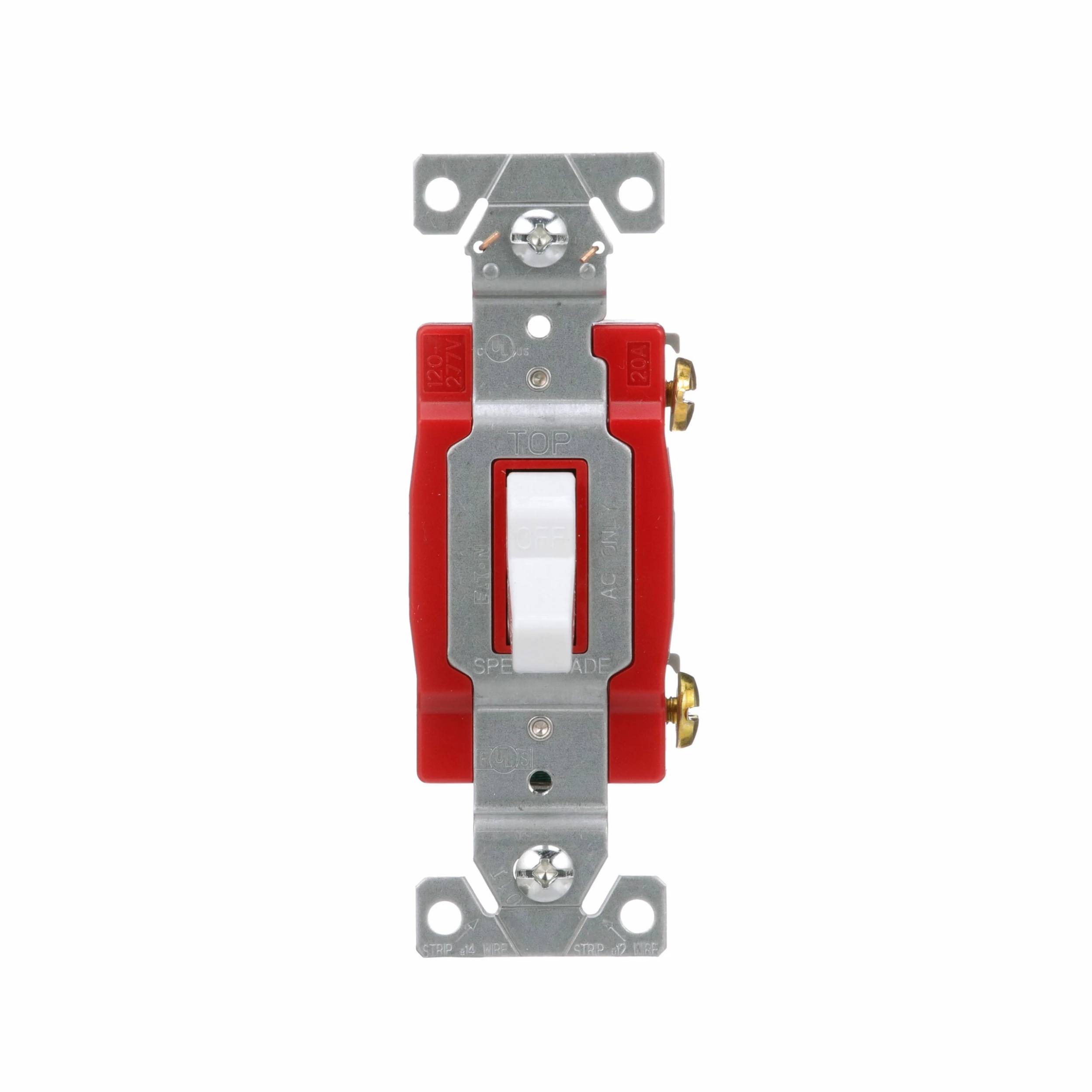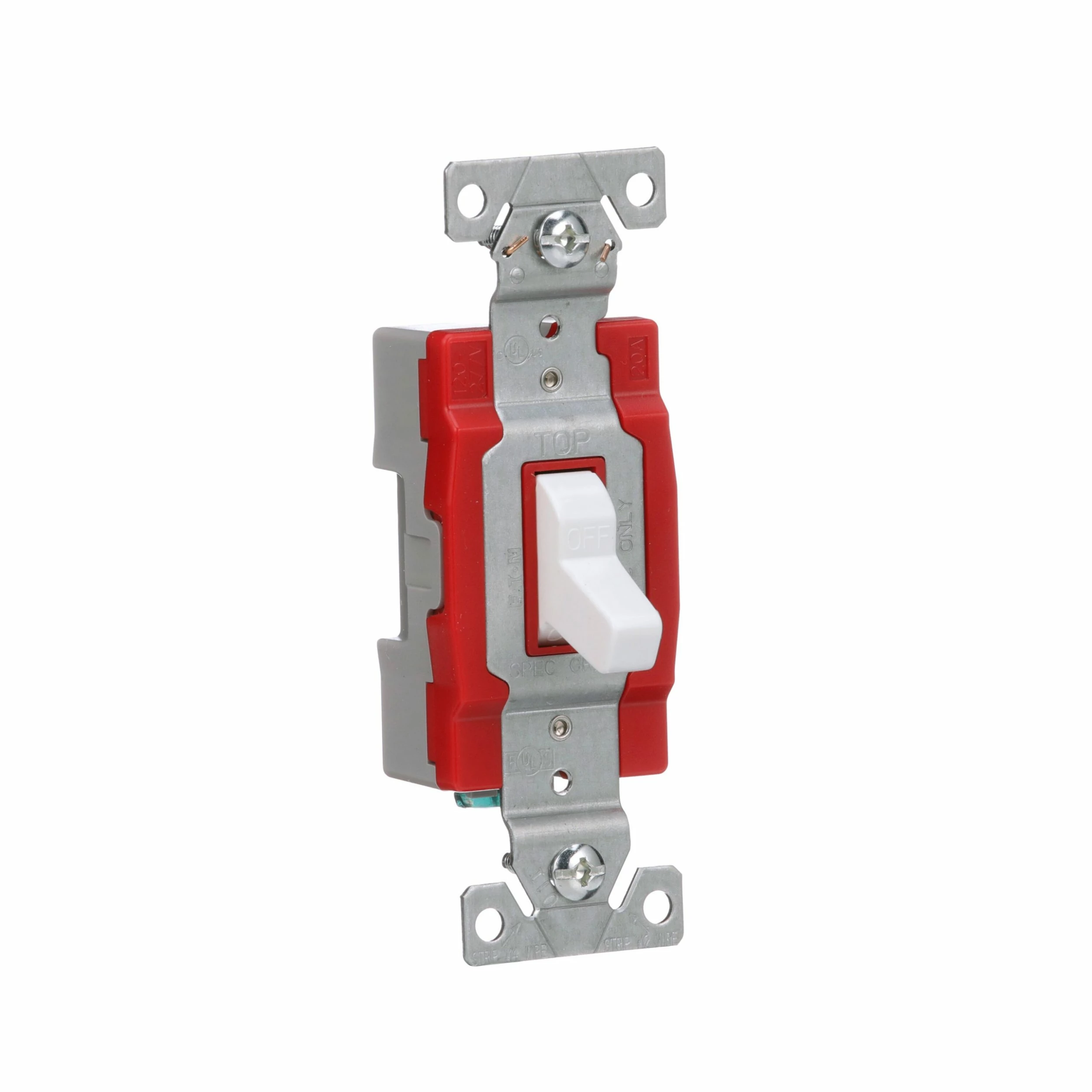 - White finish single-pole commercial grade toggle switch offers 20A, 120/277V capacity designed to provide dependable and long-lasting performance in a wide range of applications