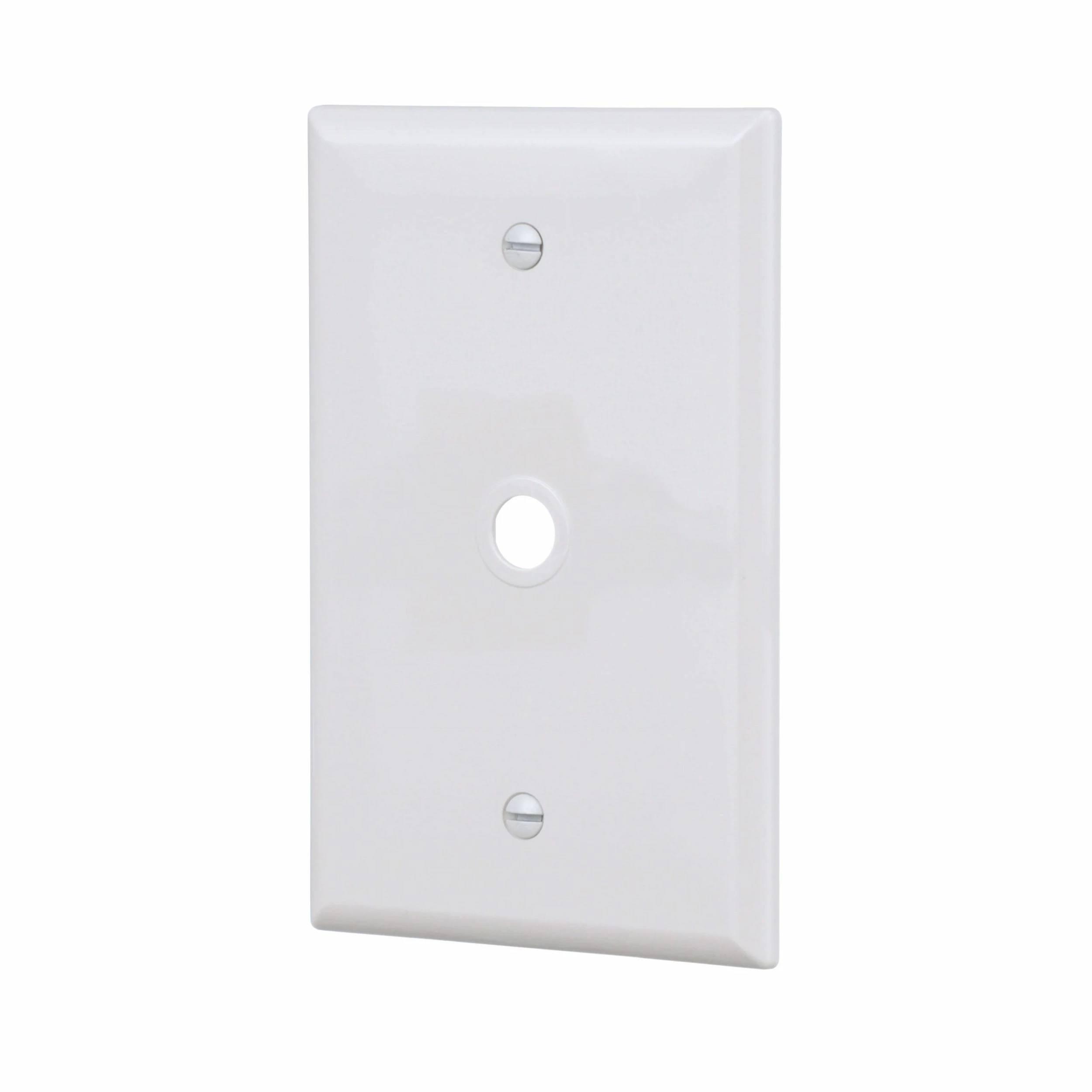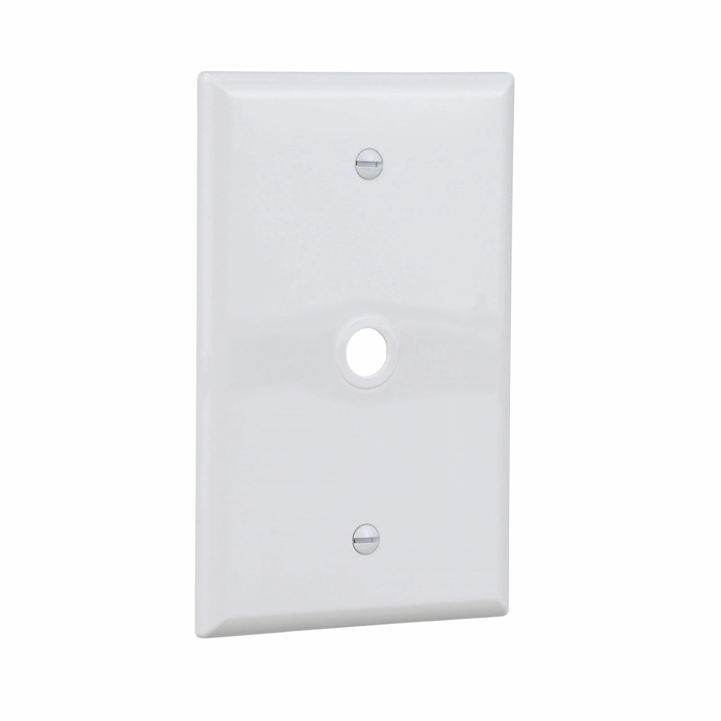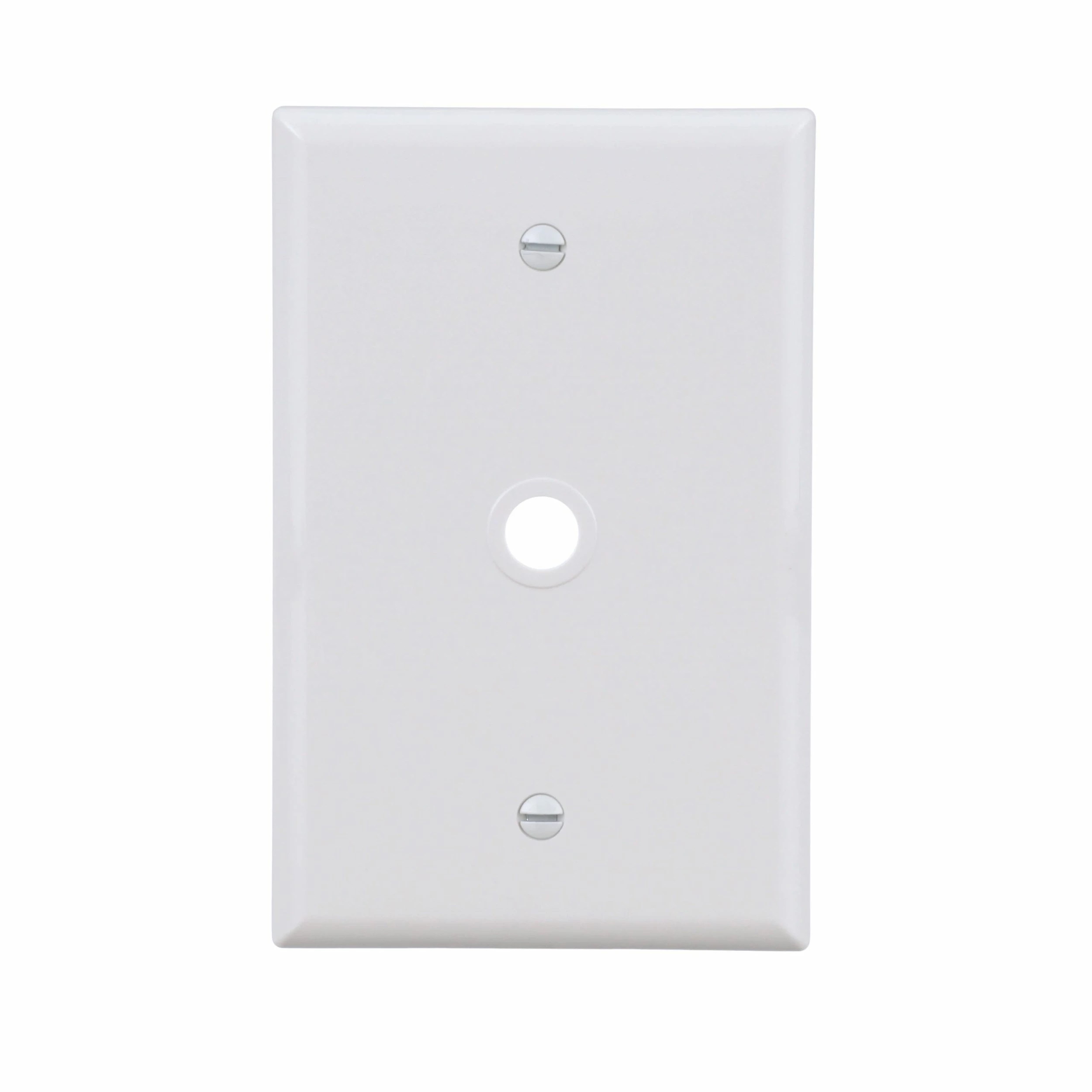 - Mid-size, single-gang wall plate with 0.40 In hole for telephone and coax applications