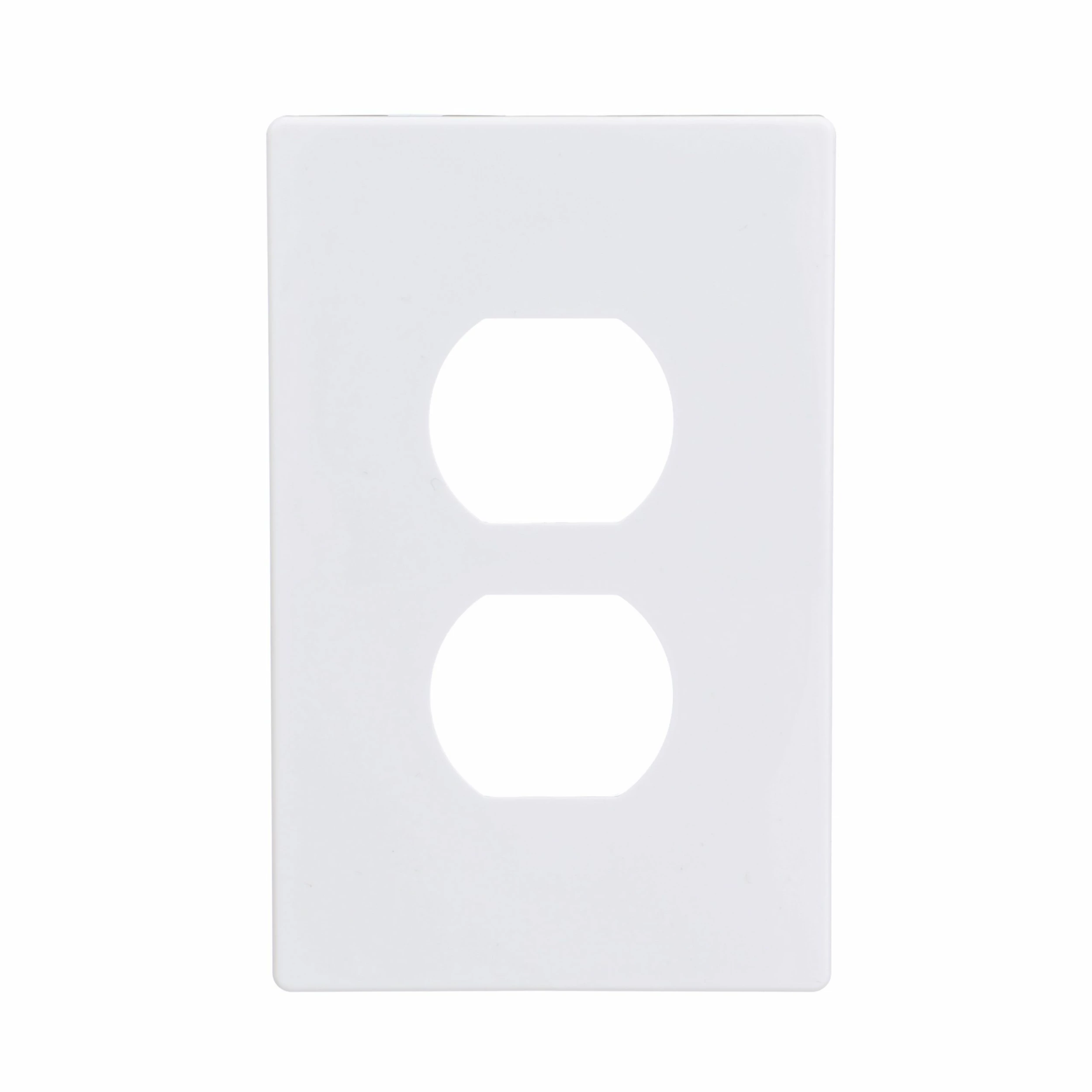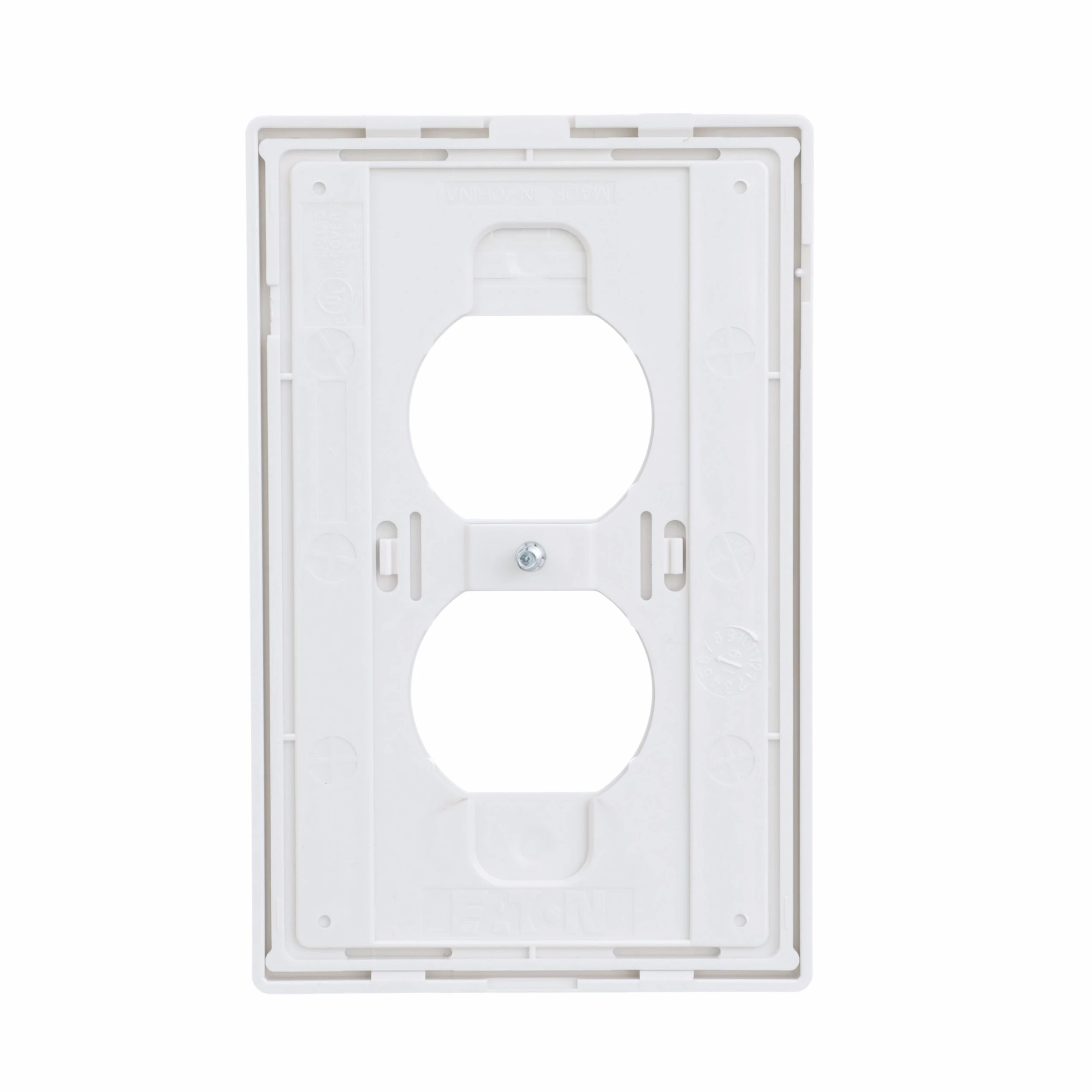 Eaton’s mid-size screw-less wall plates help provide a sleek, smooth and seamless look to your wiring devices. Rugged construction reduces installation cost due to less plate breakage and resists bowing to provide a smooth, flat installation. Exclusive time saving screw-catch feature holds mounting screws captive and simplifies installation. High gloss finish is soil resistant.