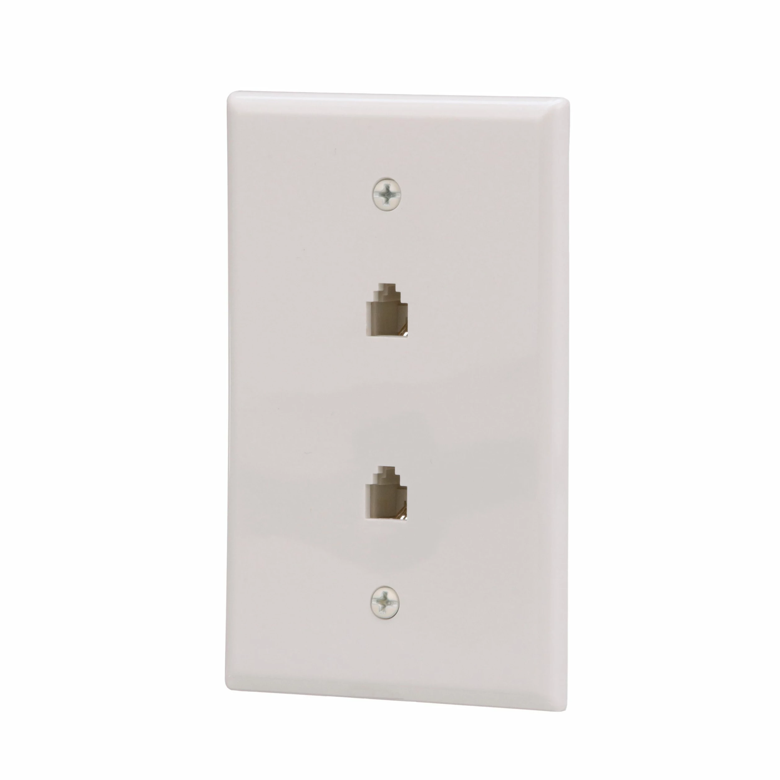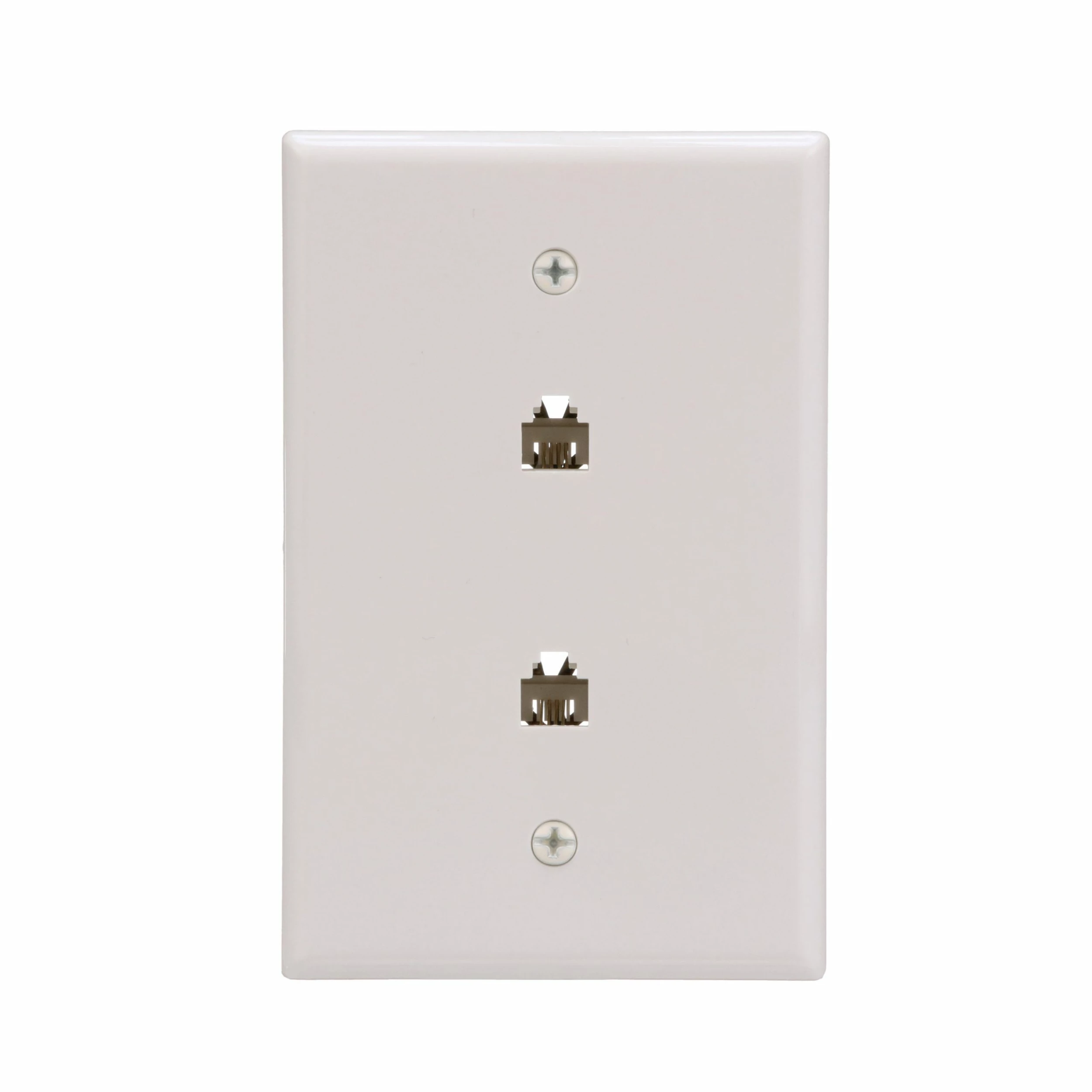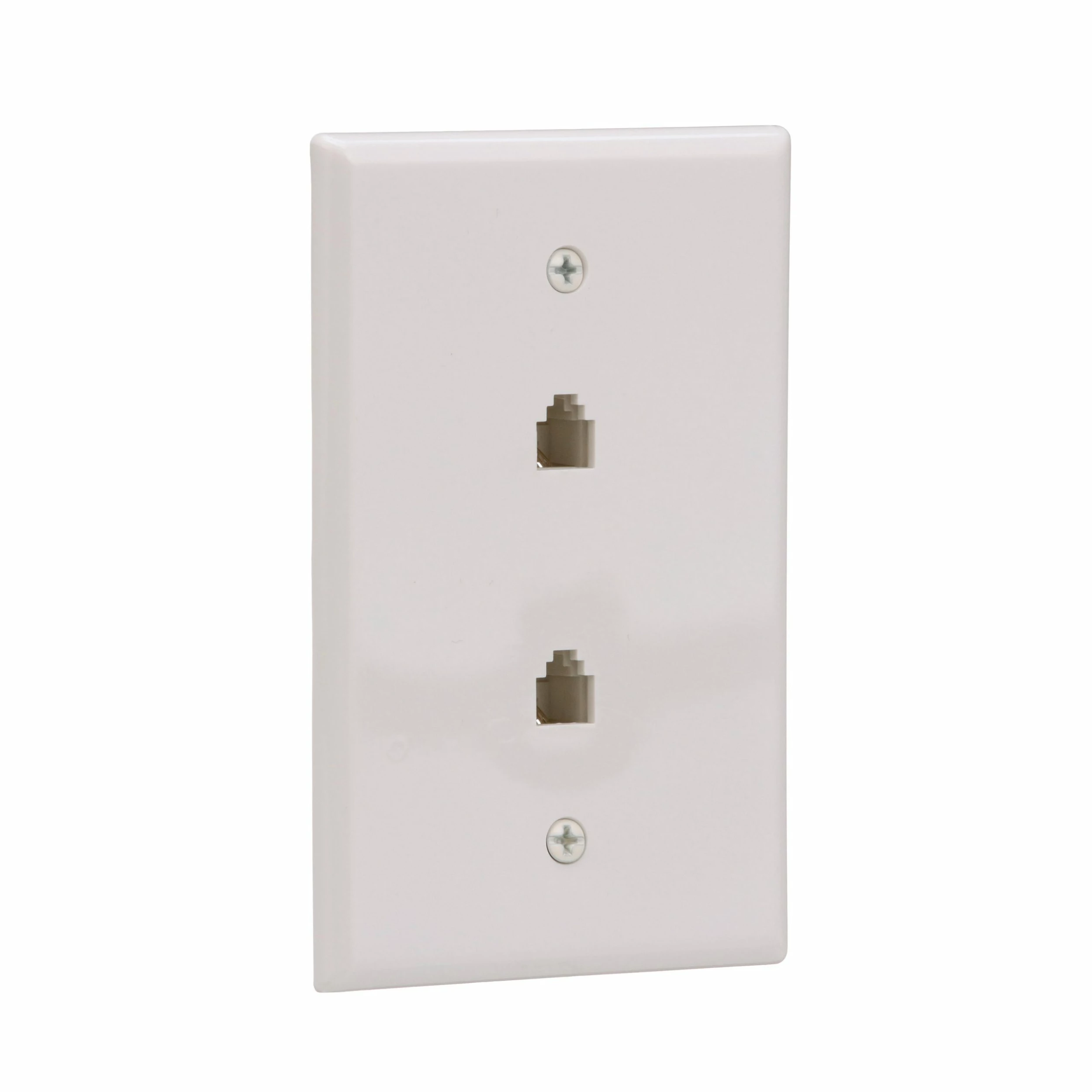 - Mid-size surface mount wall plate with two telephone jacks